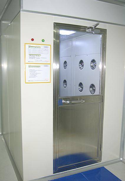 風淋房是一種通用性較強的局部凈化設備,安裝于潔凈室與非潔凈室之間。當人與貨物要進入潔凈區時需經風淋房吹淋,其吹出的潔凈空氣可去除人與貨物所攜帶的塵埃,能有效的阻斷或減少塵源進入潔凈區。同時又可起到氣閘的作用,阻止未凈化的空氣進入潔凈區域。