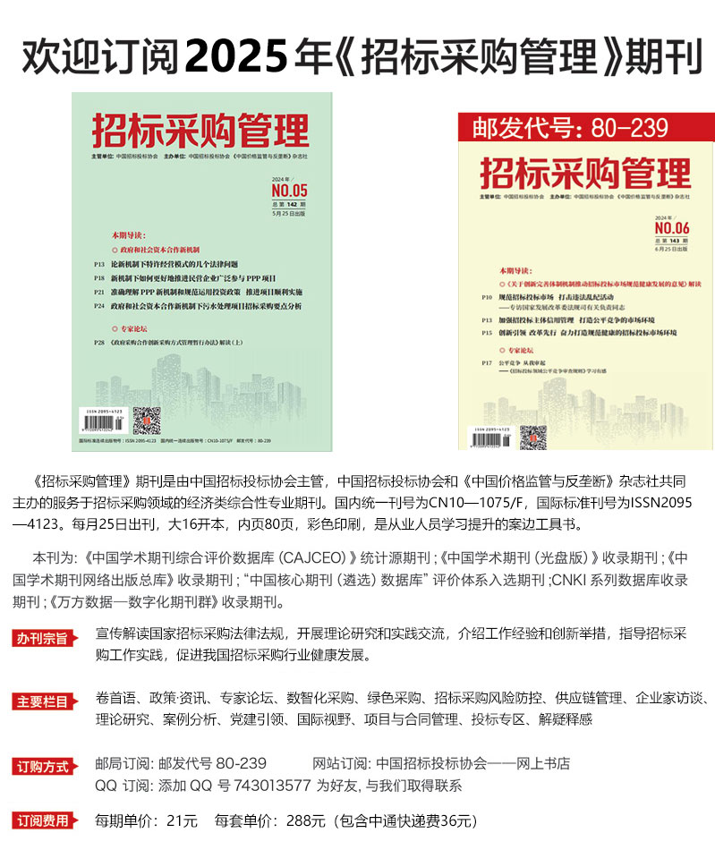 書 名: 點(diǎn)擊進(jìn)入《招標(biāo)采購管理》雜志網(wǎng)站